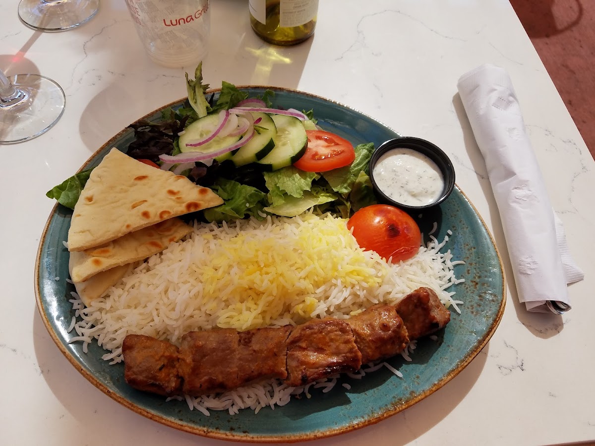 The menu at Luna Grill offers a tantalizing array of plates perfect for any appetite. One of their standout selections is the Garlic Bonfire Shrimp Kabob Plate, featuring juicy, flame-grilled garlic shrimp drizzled with a fresh lemon and parsley finish that is both refreshing and savory—all for just $17.49. Complement your meal with their scrumptious Chicken Kabob Plate, showcasing succulent, boneless chicken tenders grilled to perfection, served alongside warm pita bread and your choice of zesty sauces and two delicious sides.